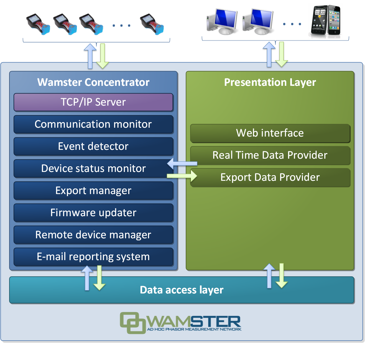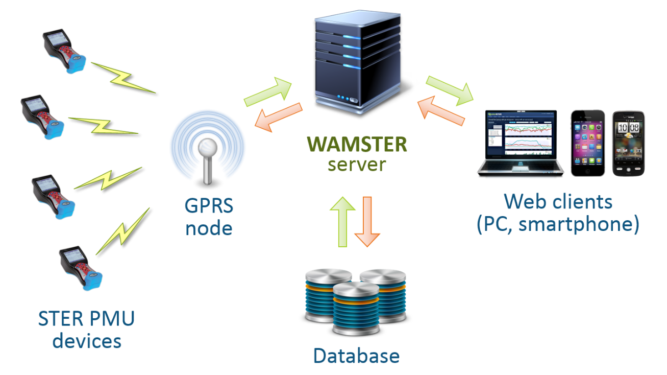 Wamster components are also compatible and interoperable with other equipment: STER PMU devices are IEEE C37.118 compliant and can work in Ethernet or serial mode like a standard PMU device. Also, Wamster server can be configured to exchange data with other PDCs and customer devices.